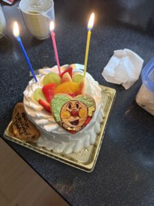 朝から風船と格闘し、飾りつけとケーキの準備で大忙しの1日でした。