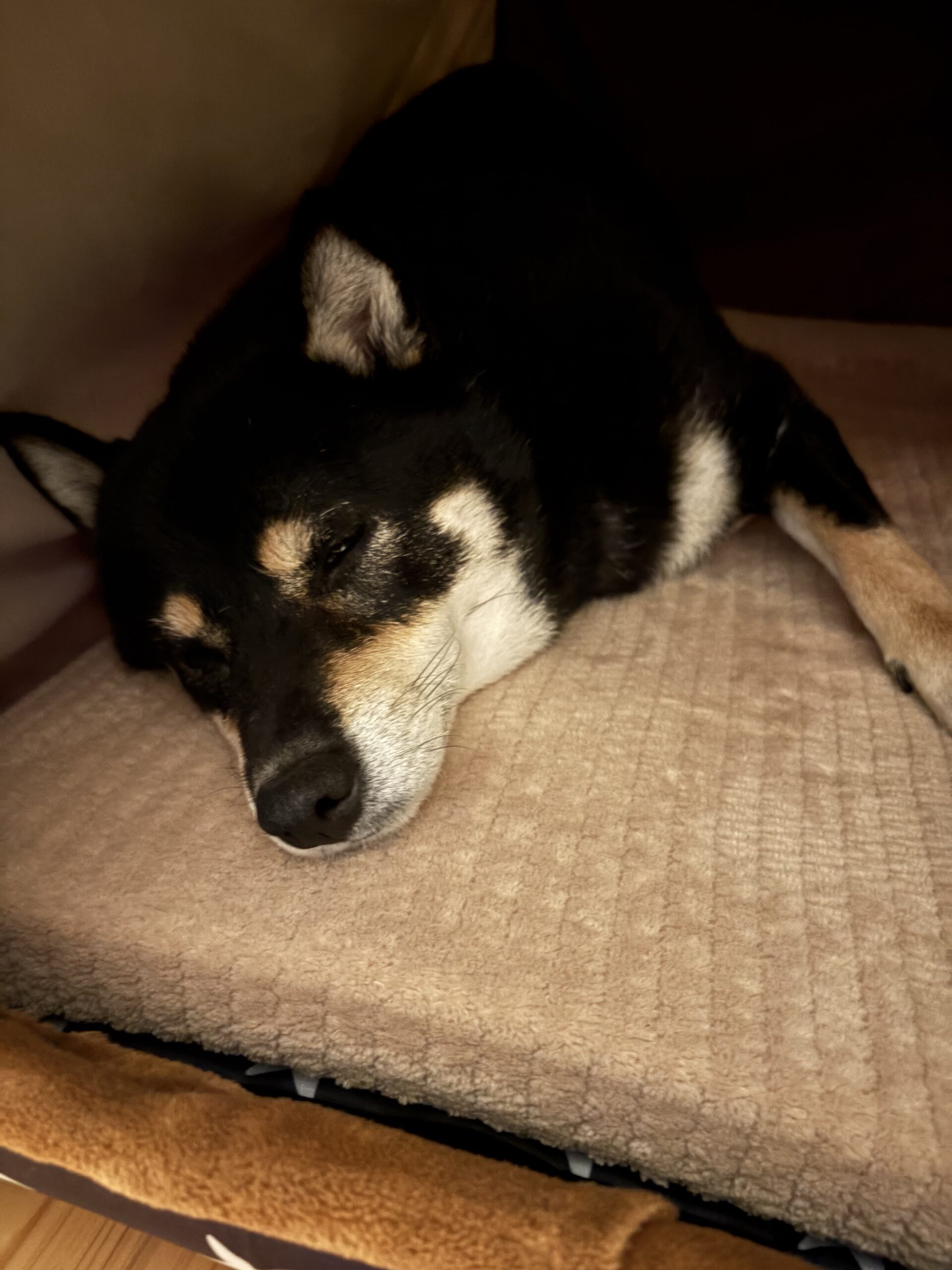 (altテキスト:黒柴のまめが穏やかに寝ている様子)
