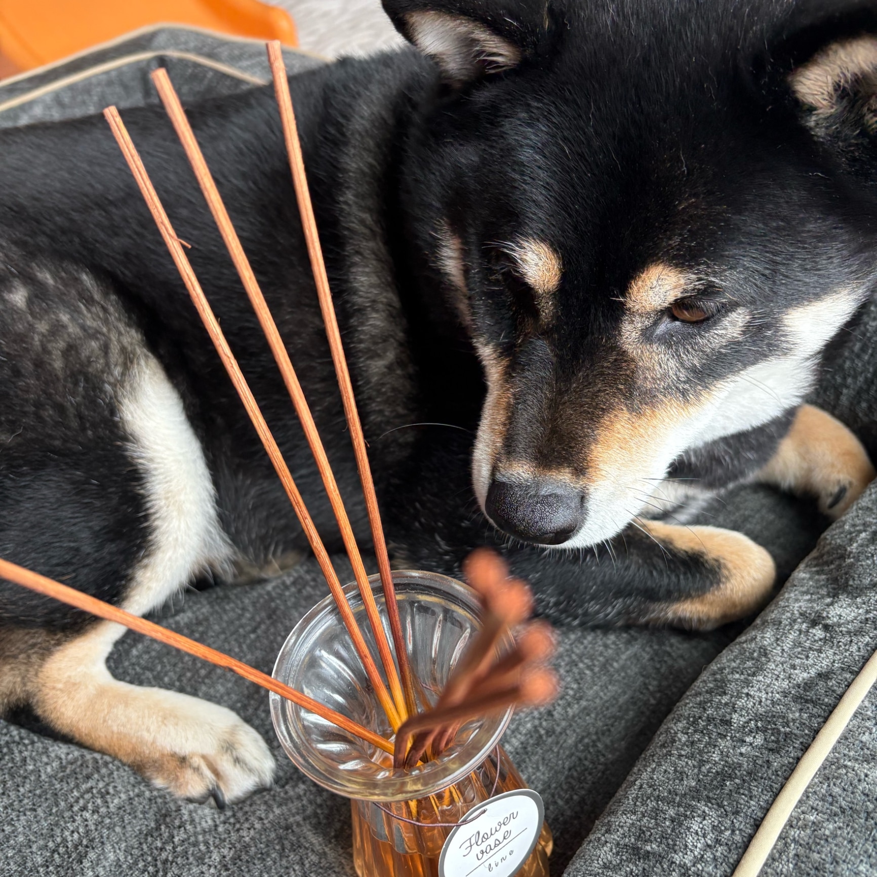 黒柴まめがディフューザーの香りを確認している様子