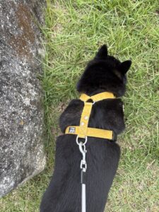 以前のハーネスが抜けて、まめが自由の身に。