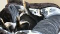 下の子がまめに頭を預けて寝ようとしている後ろ姿