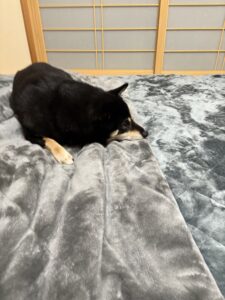 布団を広げた瞬間に、いち早くその上を占領したのは……もちろん まめ🐶(笑)